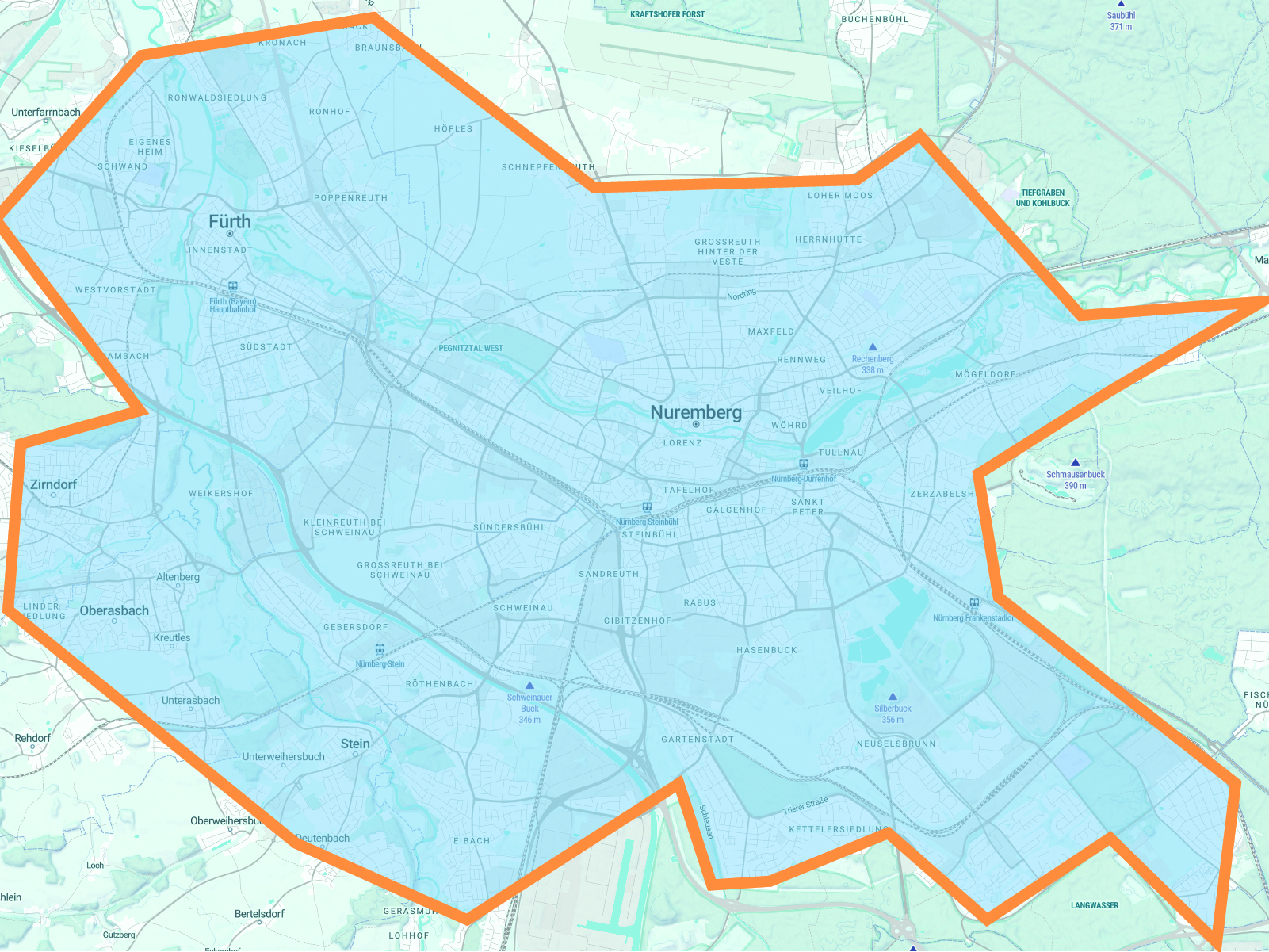 In folgenden Gebieten kann deine Lieferung in 60-90 Minuten geliefert werden, ansonsten per DHL in 1-3 Tagen: